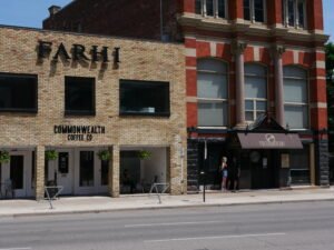 Joyful couple enjoying a shopping day in a modern mall setting, smiling and relaxed.